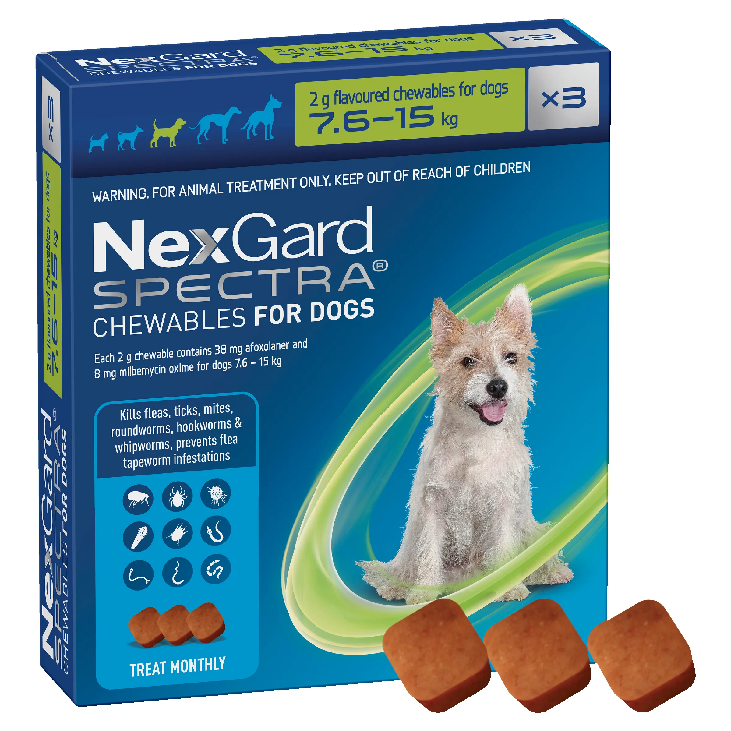 7,6-15 kg köpekler için aylık pire, kene ve solucan koruması.